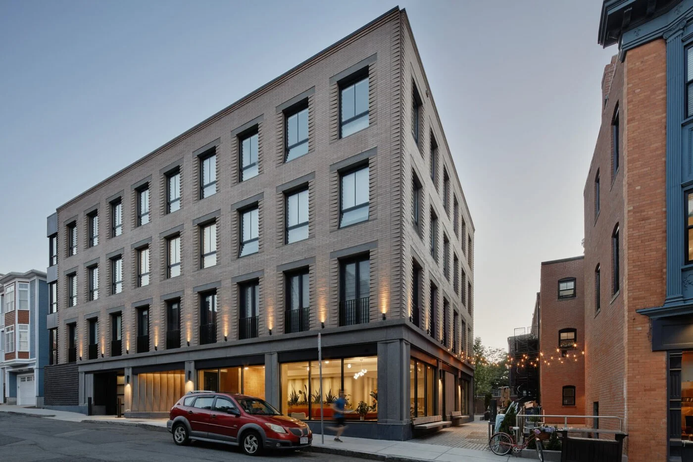 The building features elegant custom brick and precast details in the facade, inspired by the historic masonry in the surrounding neighborhood. The units — a mix of studios, one- and two-bedroom apartments — are efficiently arranged in a point-loaded plan. It is one of the first buildings constructed using the City of Boston’s Compact Living Pilot. While compact, the unit interiors feel spacious with large windows, high ceilings, sleek custom millwork, and warm wood floors.